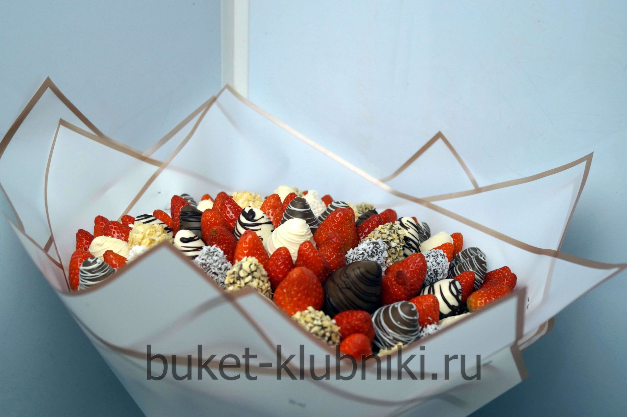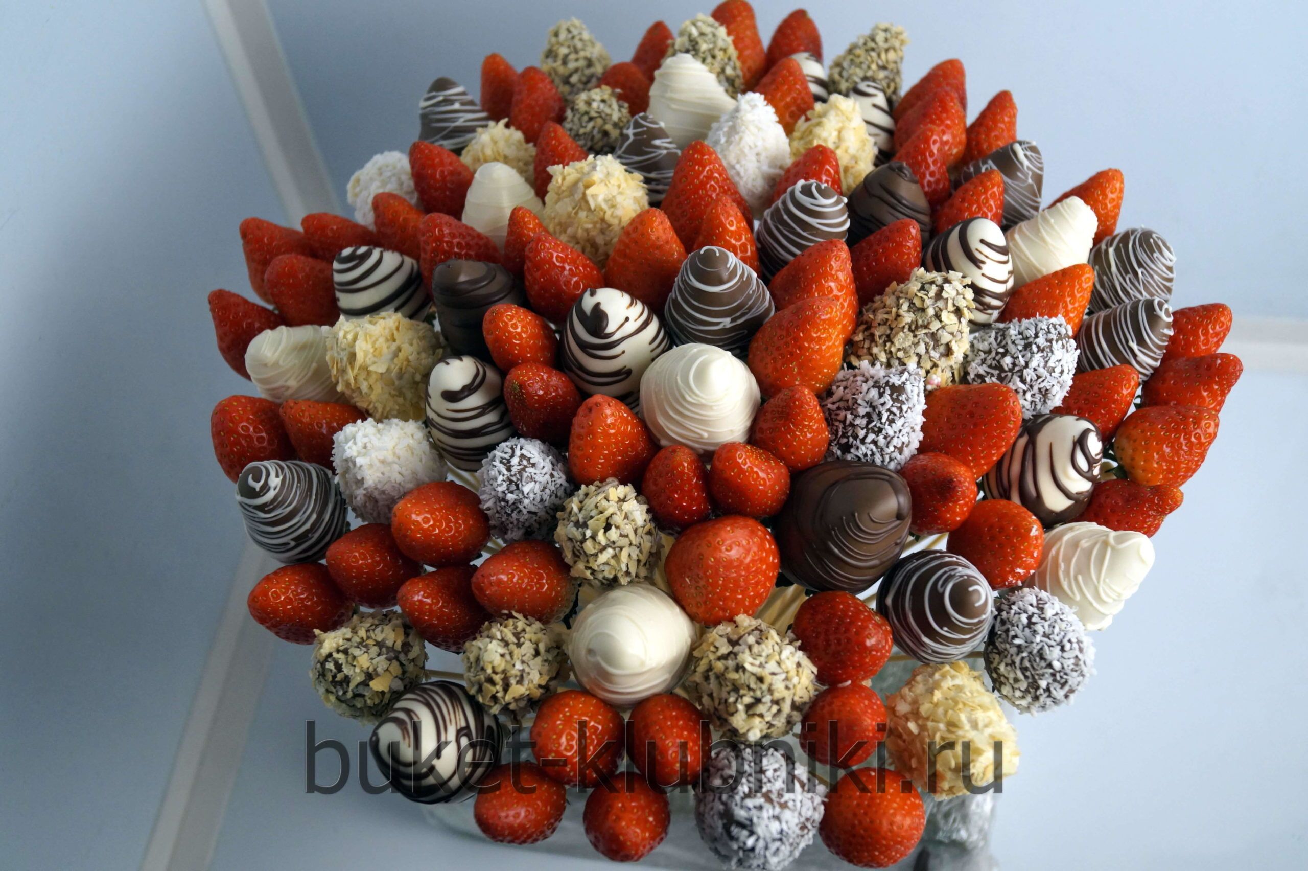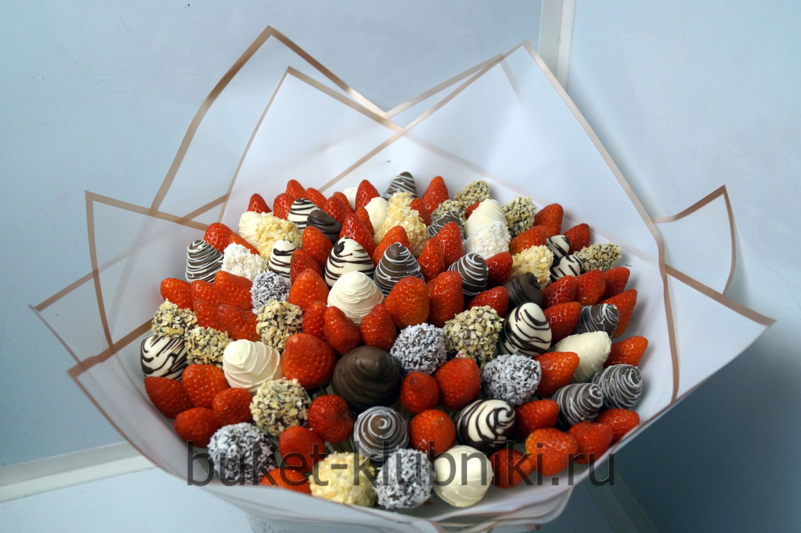 Букет из клубники: Микс клубники без шоколадной глазури и разными шоколадами темным молочным и белым. 101 клубника